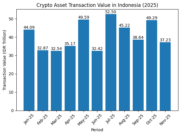 Indonesia’s crypto market throughout 2025 demonstrates a strengthening market structure and expanding scale of activity. The number of Digital Financial Asset (DFA) trading providers increased gradually, reaching 29 licensed entities by November 2025, reflecting broader industry participation under a clearer regulatory framework. This growth is primarily driven by the increase in registered crypto asset traders, indicating rising industry confidence and intensifying market competition. In terms of activity, crypto asset transaction values remained volatile but substantial, with a year-to-date total of approximately IDR 449.55 trillion, confirming that crypto assets continue to play a meaningful role in Indonesia’s digital financial market despite global market fluctuations